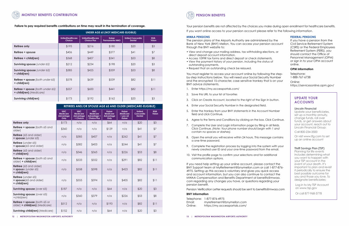 MWAA PENSIONS The pension plans of the Airports Authority are administered by the Bank of New York( BNY) Mellon. You can access your pension account through the BNY website to: