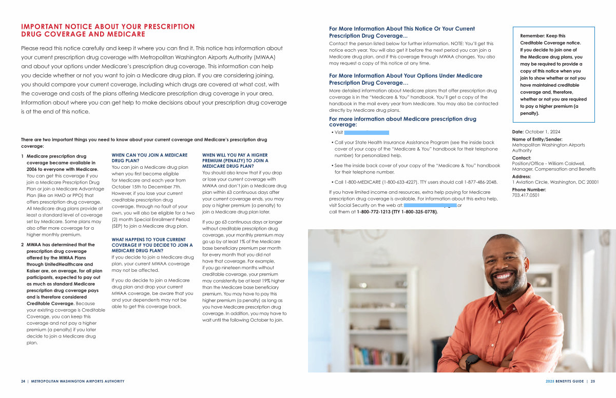 Please read this notice carefully and keep it where you can find it. This notice has information about your current prescription drug coverage with Metropolitan Washington Airports Authority( MWAA) and about your options under Medicare’ s prescription drug coverage. This information can help you decide whether or not you want to join a Medicare drug plan. If you are considering joining, you should compare your current coverage, including which drugs are covered at what cost, with the coverage and costs of the plans offering Medicare prescription drug coverage in your area. Information about where you can get help to make decisions about your prescription drug coverage is at the end of this notice.