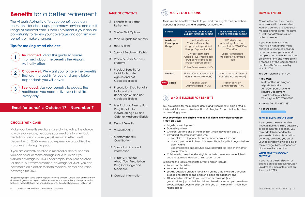 You are eligible for the medical, dental and vision benefits highlighted in this booklet if you are a Metropolitan Washington Airports Authority retiree or a surviving spouse.